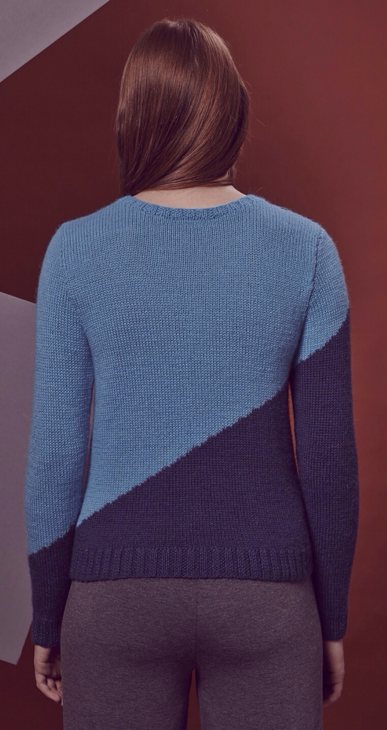 Sombra is worked flat, bottom up. Then the back and front are seamed together at sides and shoulders. The sleeves are picked up from the armhole edges and worked to the cuff (3/4 length). Sts for the round neckline are also picked up. Hem, neckline and cuffs are worked in garter st.